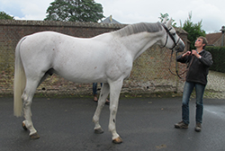 CHEVAUX D'OBSTACLE : TOSCAN gris clair" existe en Gris foncé et en toute nuance de brun. | dimensions : 36 X 41 cm. Autres vues : Profil gauche | Perspective | Face